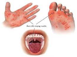 Trẻ mắc bệnh tay- chân- miệng sẽ có những biểu hiện như sốt nhẹ, chán ăn, mệt mỏi, đau họng, nổi nốt phỏng nước. Ban đầu có những chấm đỏ xuất hiện 1-2 ngày sau khi sốt, sau đó tiến triển thành phỏng nước và vỡ ra thành vết loét. Phỏng nước cũng xuất hiện ở da, thường thấy ở lòng bàn tay, bàn chân, niêm mạc miệng, lưỡi và mặt trong của má.