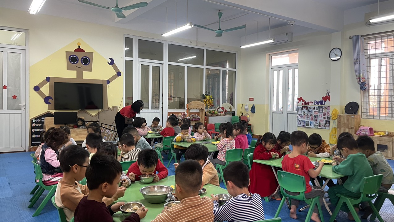 Ngày nay cùng với sự phát triển chung của xã hội, mỗi gia đình đều có cuộc sống đầy đủ sung túc hơn. Chính vì vậy trẻ được hưởng sự chăm sóc đặc biệt của gia đình và toàn xã hội. Trong khi đó nhu cầu dinh dưỡng cho trẻ lứa tuổi mầm non rất đa dạng, bữa ăn của trẻ cần được đảm bảo giá trị dinh dưỡng, vệ sinh an toàn thực phẩm. Tổ chức giờ ăn trưa cho trẻ ở trường mầm non là một trong những nhiệm vụ quan trọng trong quá trình chăm sóc giáo dục trẻ. Giờ ăn không chỉ là một nội dung trong thời gian biểu hàng ngày mà giờ ăn còn là hoạt động rất vui vẻ, ngoài ý nghĩa cung cấp cho trẻ năng lượng thì trẻ còn được học bao kiến thức từ việc yêu thích các món ăn, có hiểu biết về cách chế biến một số món ăn, kỹ năng tự phục vụ.