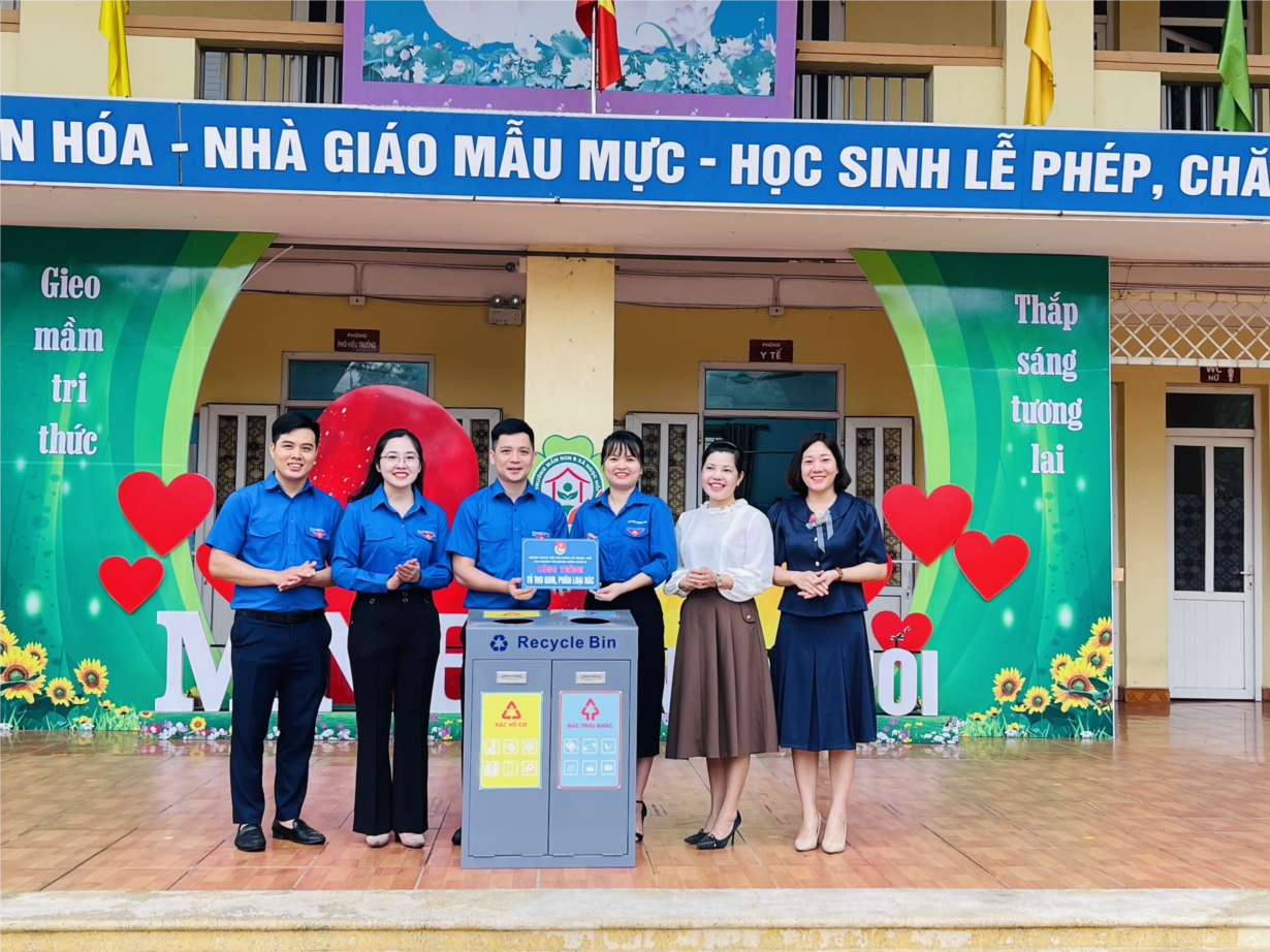trao tặng nhà trường "Tủ thu gom và phân loại rác" .