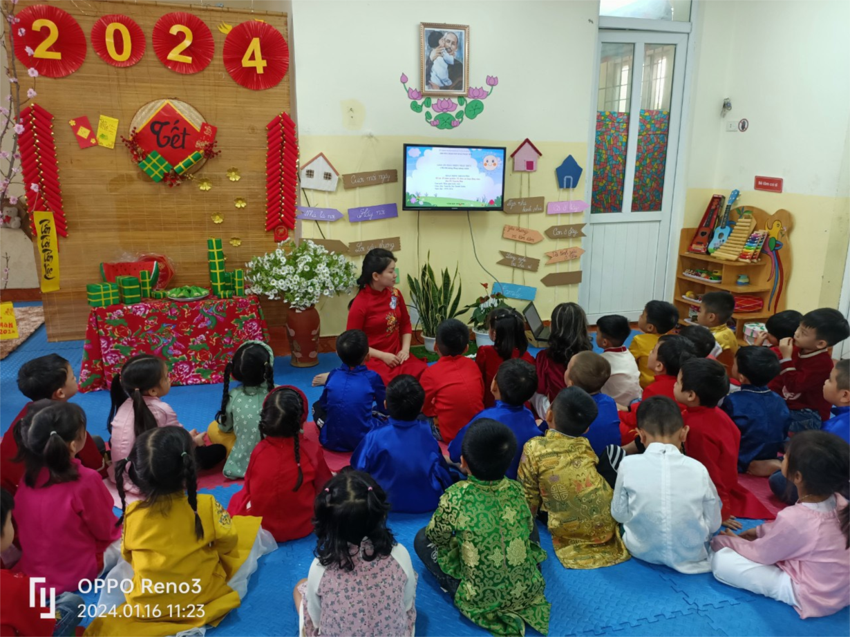 Hòa trong không khí náo nức đón xuân trên khắp mọi miền tổ quốc Việt Nam, nhằm giáo dục cho trẻ nét đẹp văn hóa truyền thống của dân tộc. Cô giáo Thanh Xuân trường mầm non B xã Ngọc Hồi đã tổ chức các hoạt động chào đón Tết Nguyên đán.