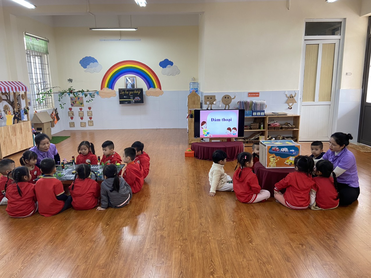 Chúng tớ chú ý lắng nghe cô kể câu chuyện “Ô tô con học bài”